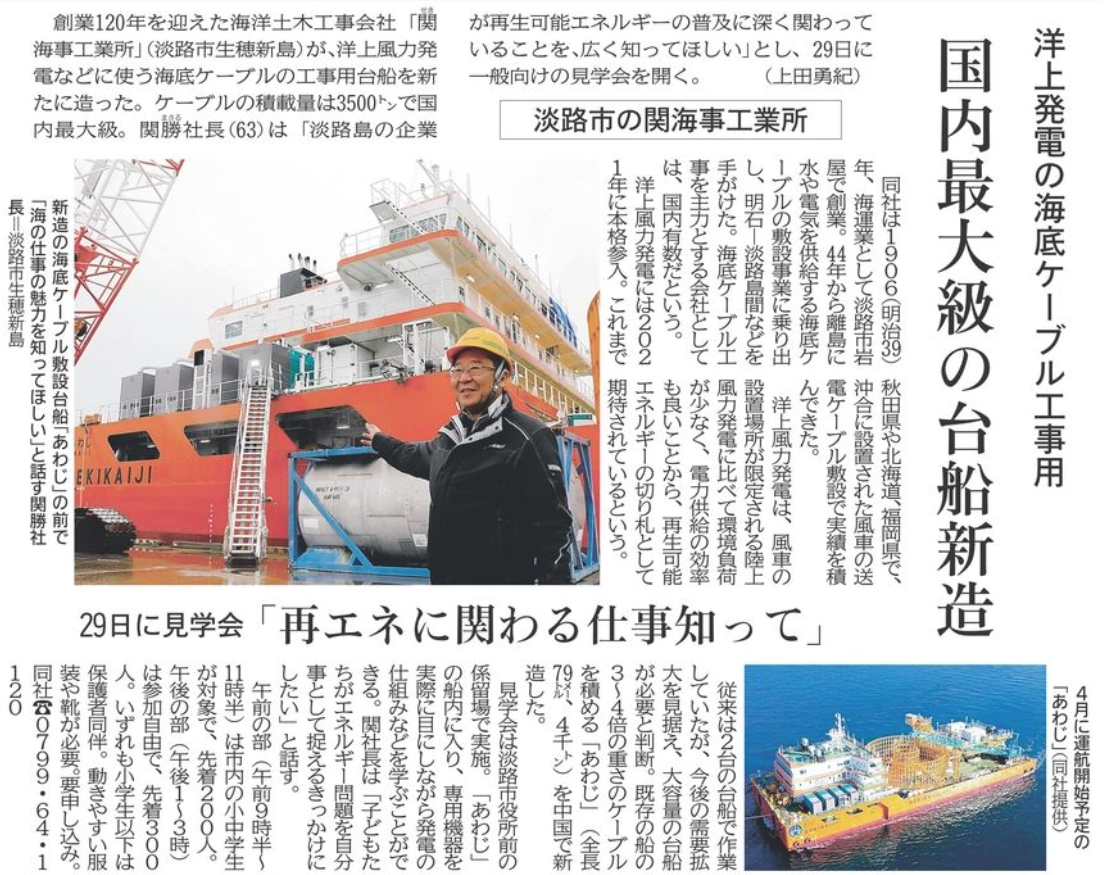 ㈱関海事工業所様 巨大作業台船 一般公開のお知らせ