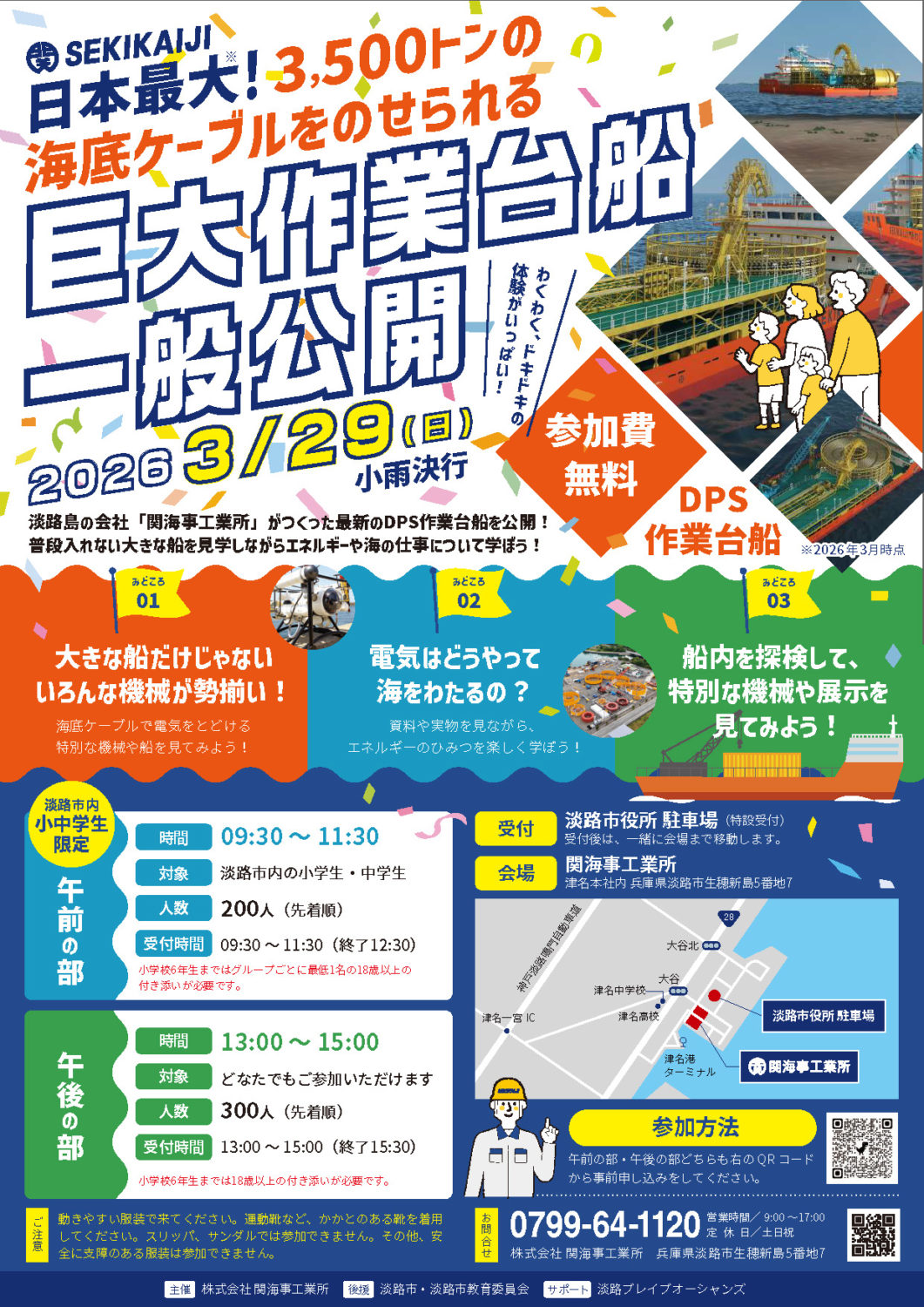3月29日(日)に、㈱関海事工業所様による巨大作業台船の一般公開イベントが開催されます!