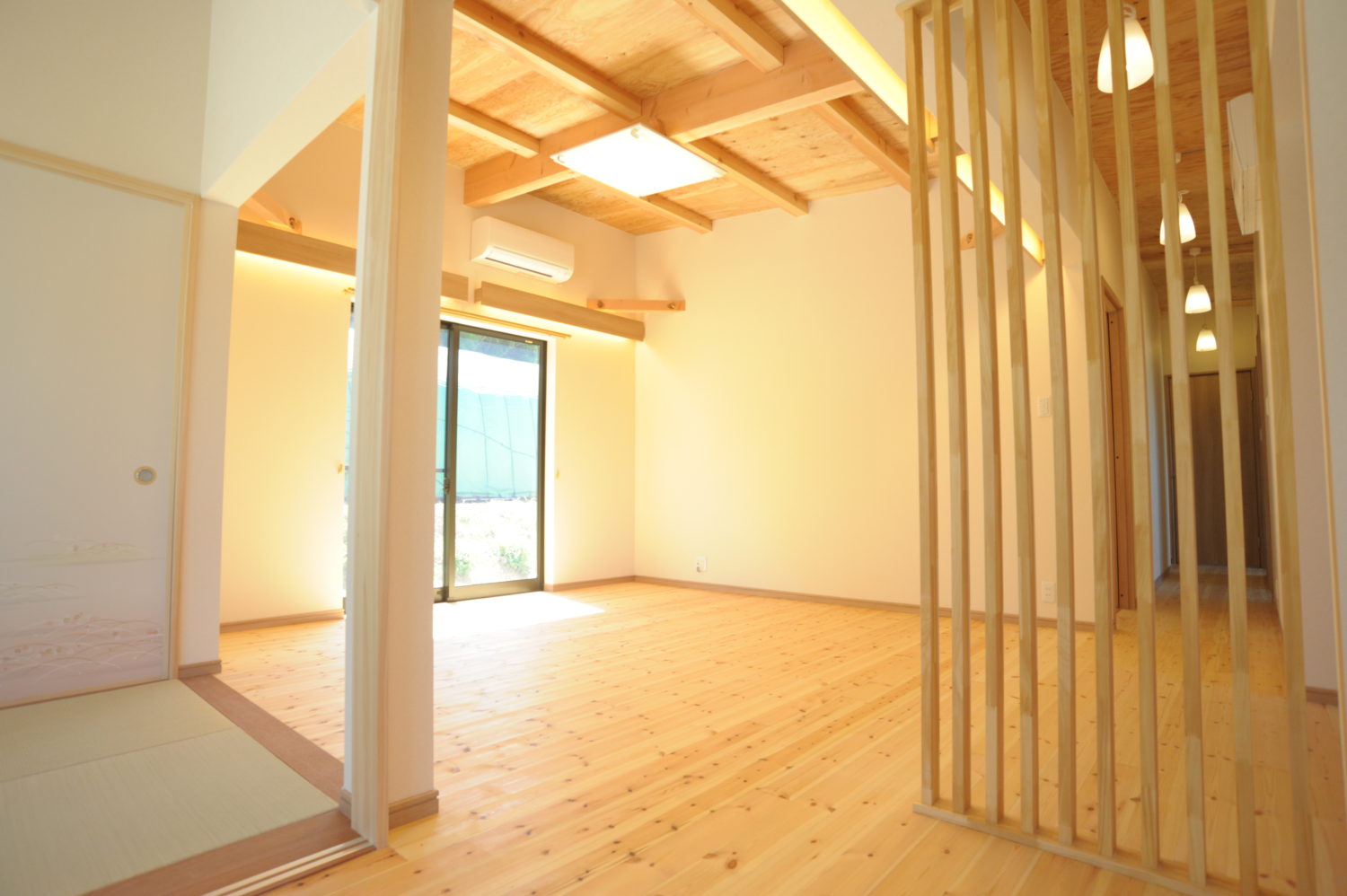 また、大きな開口部を設けることで、室内と庭が緩やかにつながり、光や風を取り込む開放的な空間としています。