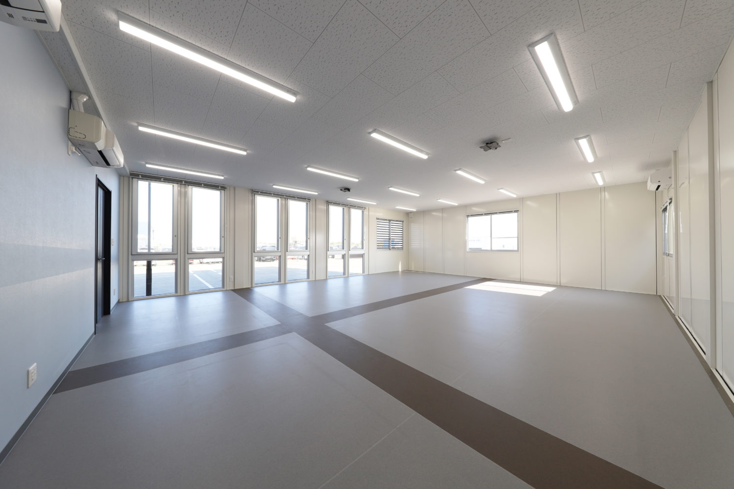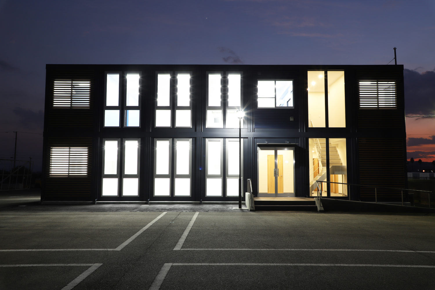 本建物では、三協フロンテアのユニットハウス「MS-1」を採用し、短工期での施工を実現。計画段階から精度の高いコストコントロールを行い、事業計画に即した合理的なオフィス建築としました。