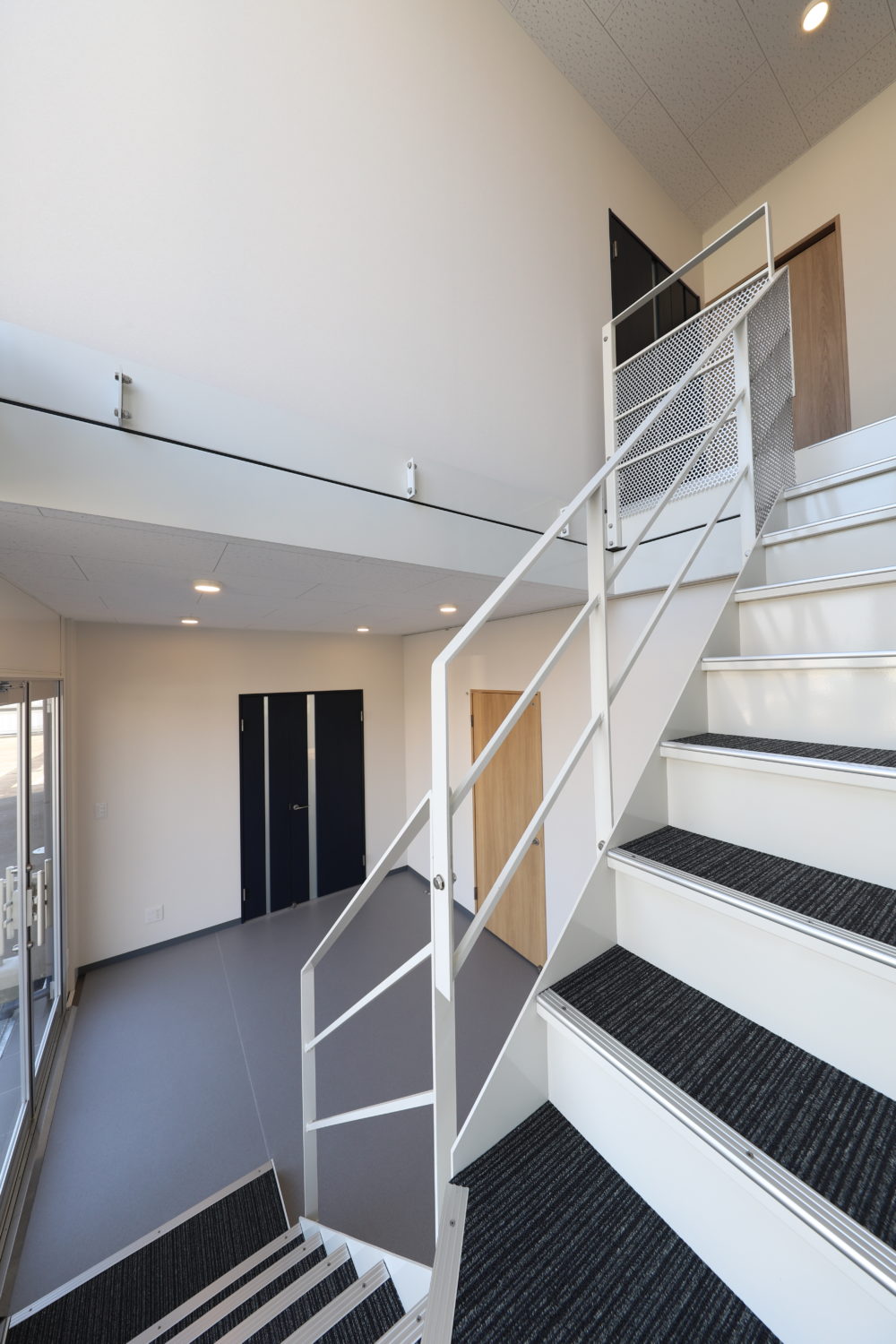 内部は、業務効率を高める動線計画と、採光を確保した明るく開放的な空間構成とすることで、働きやすさと機能性を両立しています。