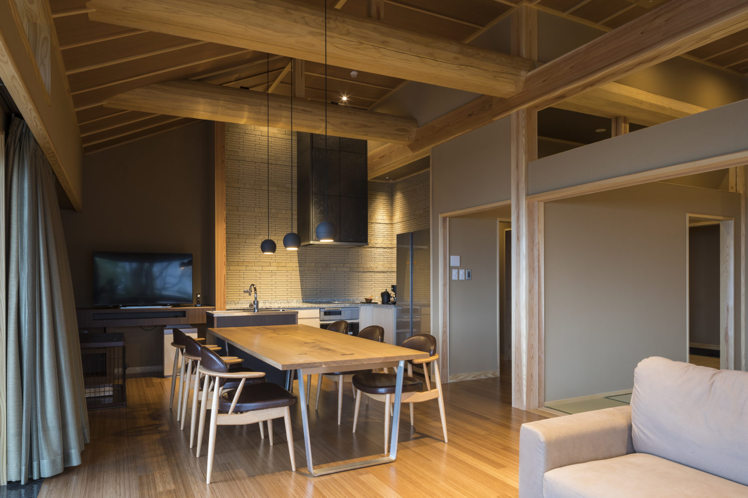 宿泊機能に加え、和室・ベッドルーム・キッチンなど多様な用途が求められる中で、各空間が無理なく連続するよう、動線計画や納まりを丁寧に整えました。