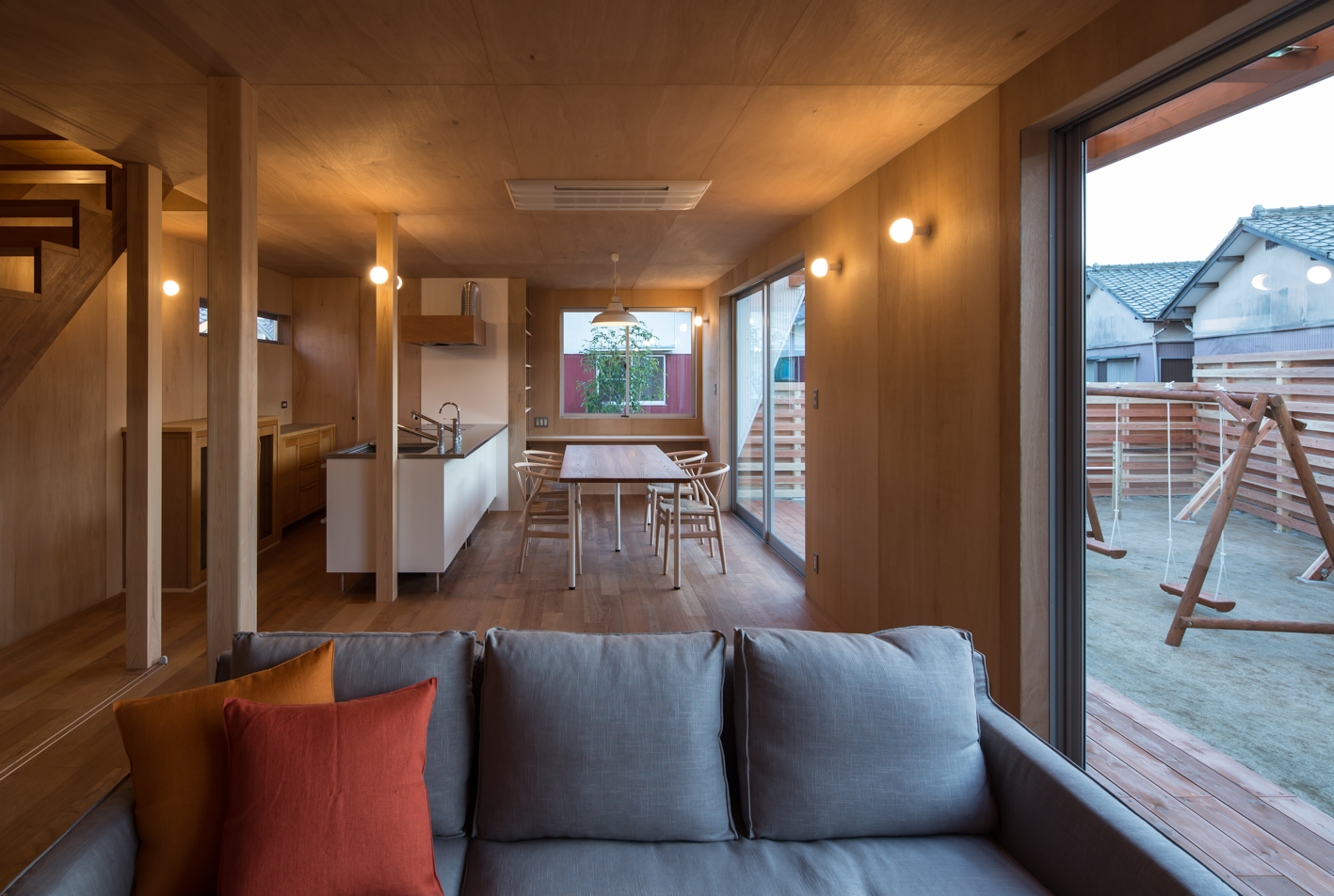 1階には家族が集うリビングと外部へと連続する縁側空間を配置し、内と外のつながりを感じられる構成としました。