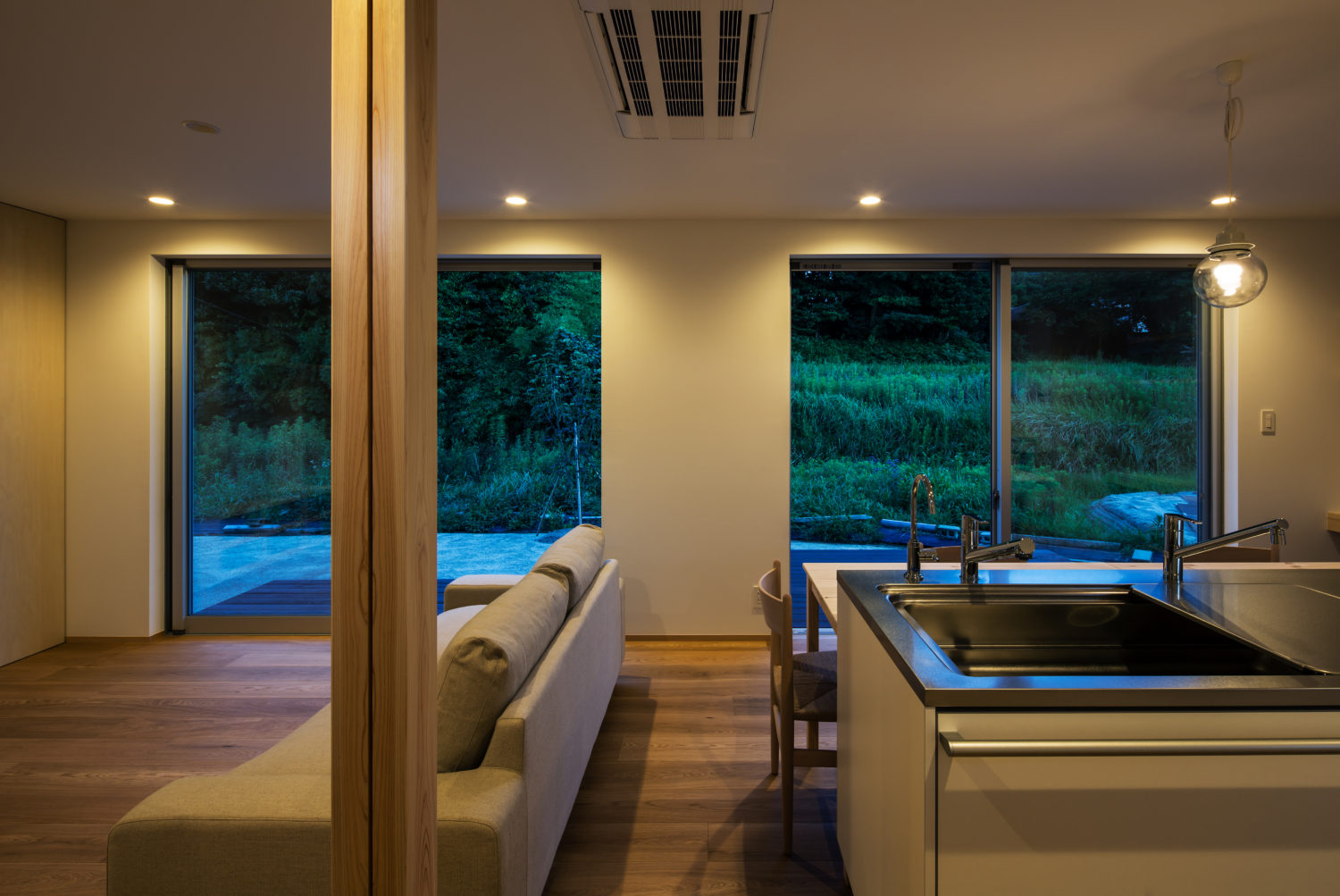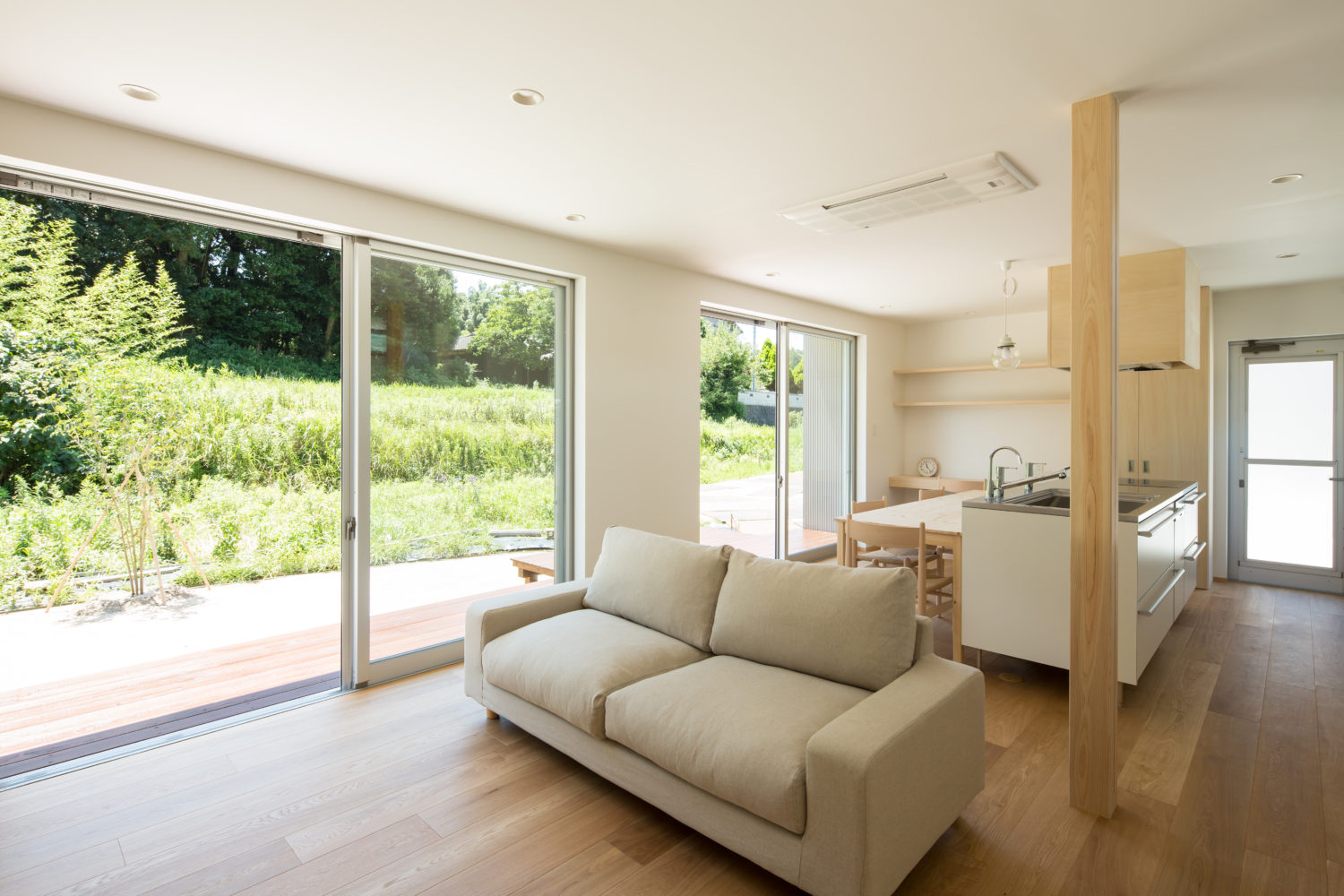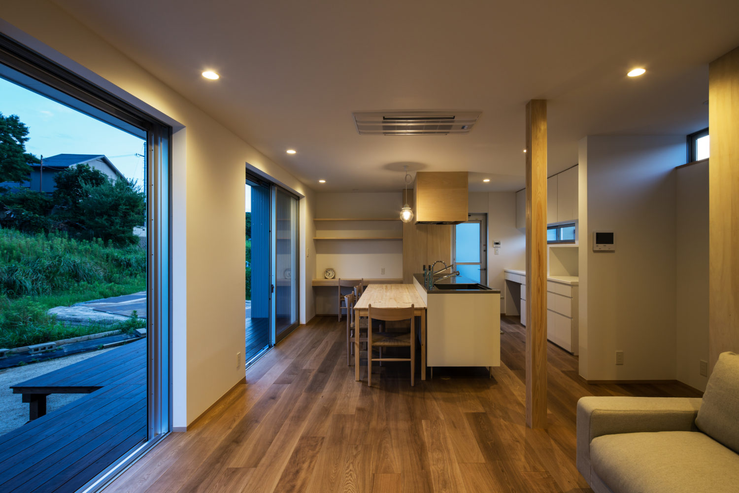 視線の抜けや採光を確保しながら、内外のつながりが無理なく成立するよう、開口部や空間構成の納まりを丁寧に整えました。