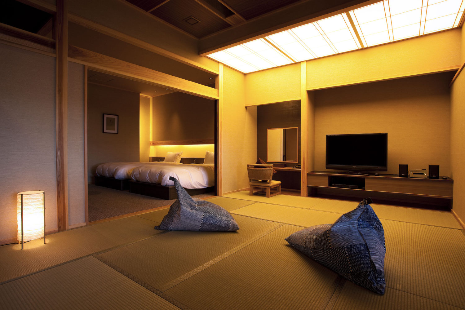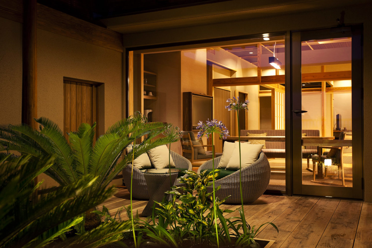 ソファベッドから夜空を望める設えや、露天風呂とテラスの連続性により、湯上りから夜空へとつながる時間の流れを丁寧に構成しました。