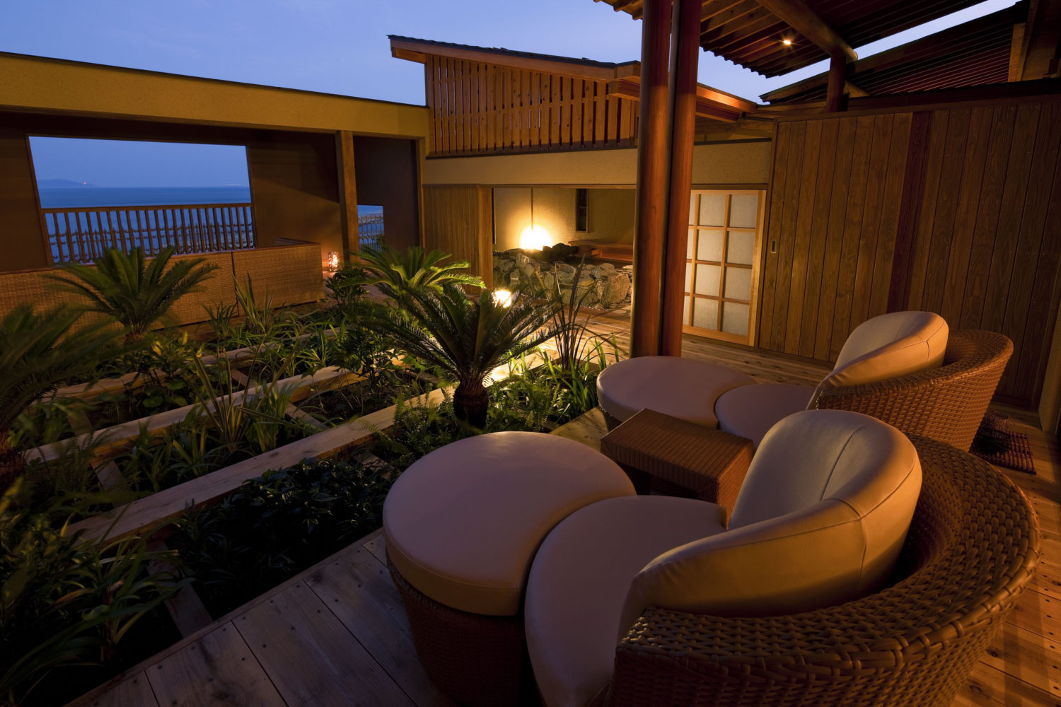 波の音と静けさの中で、星空を眺めるひとときが自然に生まれるよう、空間のつながりと距離感に配慮しています。