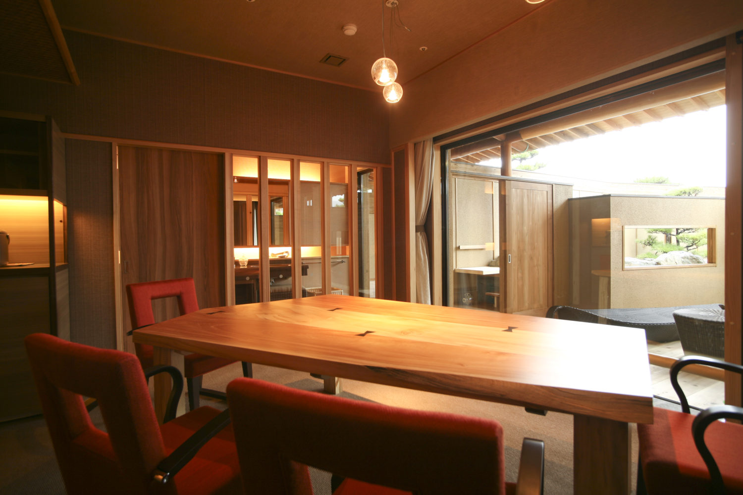 また、海辺のウッドテラスに設けられた露天風呂を中心に、内と外を行き来する体験が連続するよう、開口部や配置、距離感を丁寧に調整しています。
