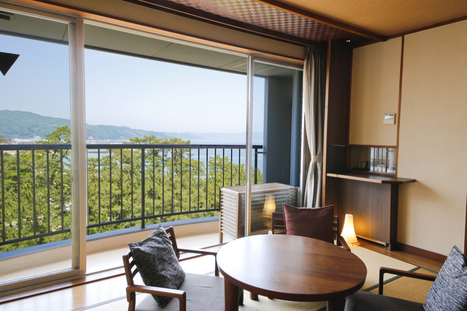 目の前に広がる大浜海岸と、背後にそびえる三熊山という淡路島らしい自然環境を取り込み、客室や共用空間において“景色と一体となる空間”を再構築しました。